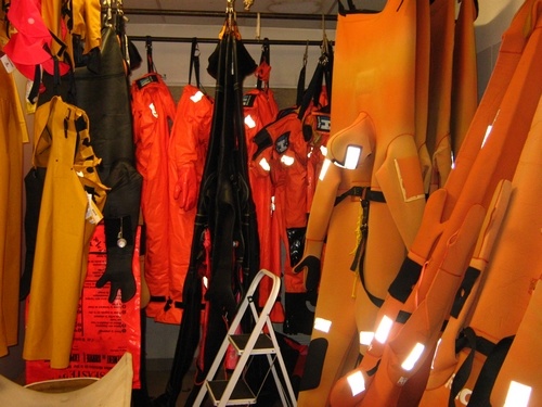 Salle de 80m2 équipée de barres et crocs pour le ramendage, avec morceaux de chalut, filets, funes d’acier, cordages 3 ou 4 torons, épissoires, fil à ramender… Cette salle permet l’apprentissage par la pratique des différentes techniques.