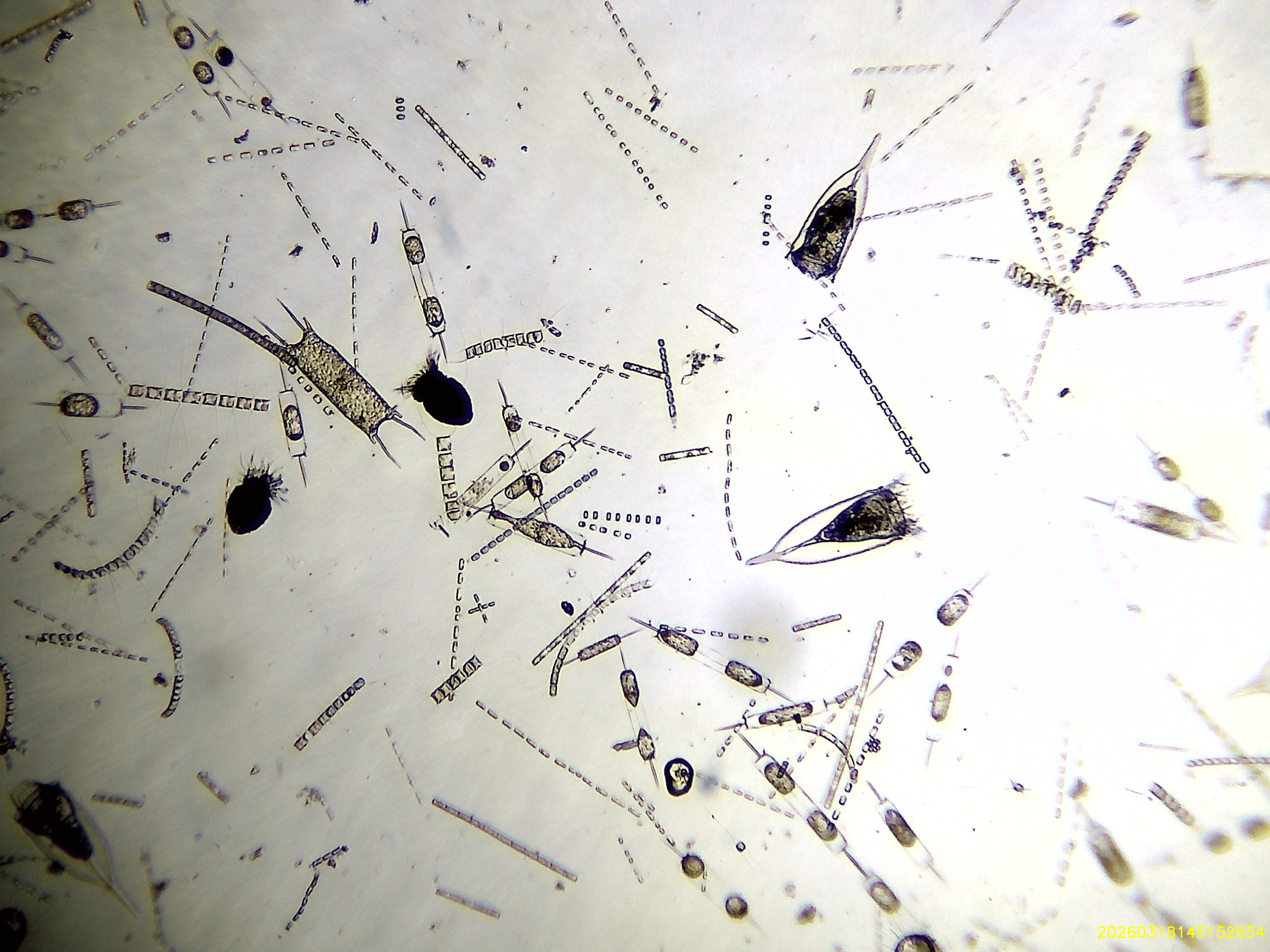 Cette observation a permis de mettre en évidence une grande diversité d’espèces, notamment du phytoplancton (diatomées, dinoflagellés) et du zooplancton (larves, copépodes…). Une immersion concrète dans un univers invisible à l’œil nu, mais pourtant essentiel à la vie marine.