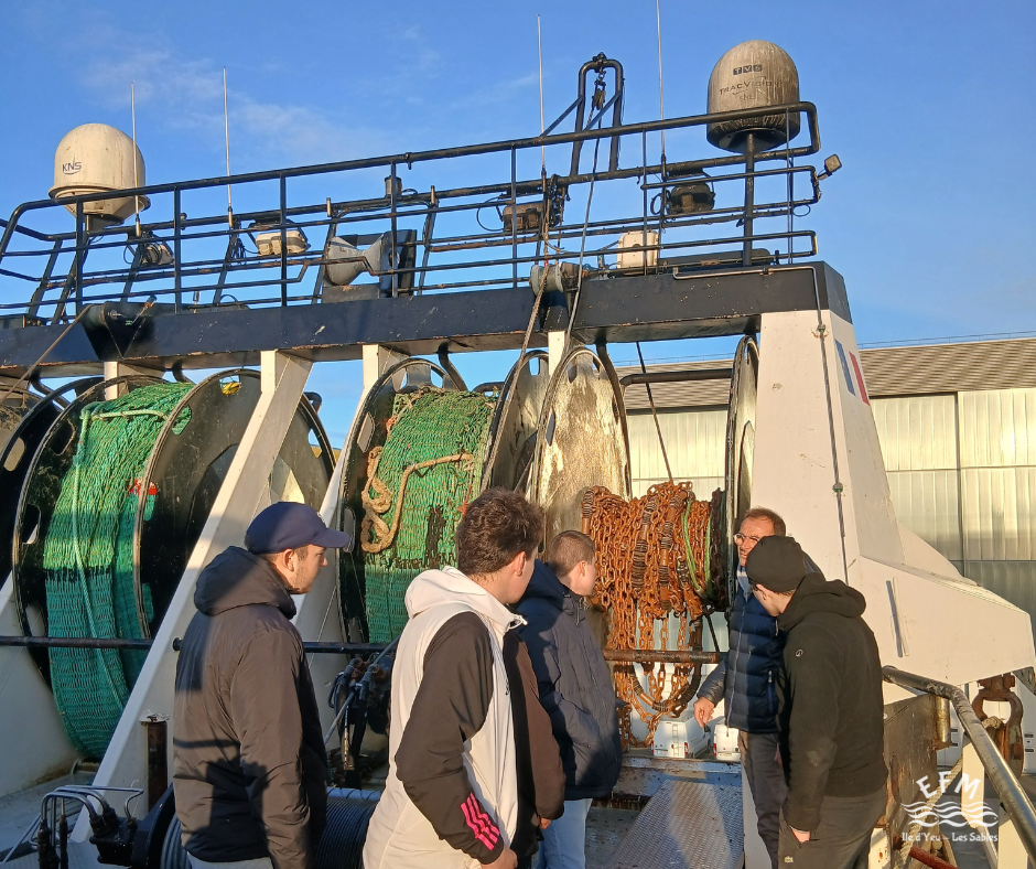 Ce matin, nos apprentis CAP Maritimes ont eu l’opportunité de visiter le SEAHORSE, un chalutier senneur des Sables d’Olonne équipé de matériels de pêche moderne.