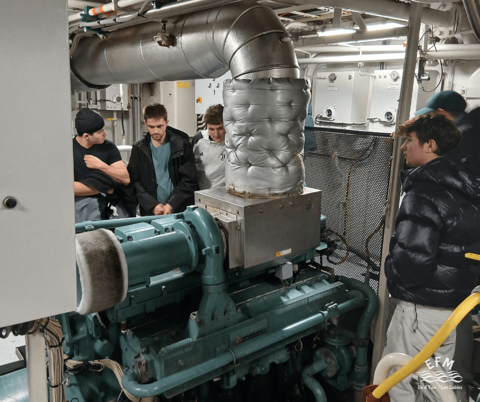 Nous remercions chaleureusement Ludovic, le patron armateur, et Stephan, le chef mécanicien, pour leur accueil. Ces moments d’échange sont essentiels pour relier la théorie à la pratique et donner aux futurs marins une vision plus complète du métier.